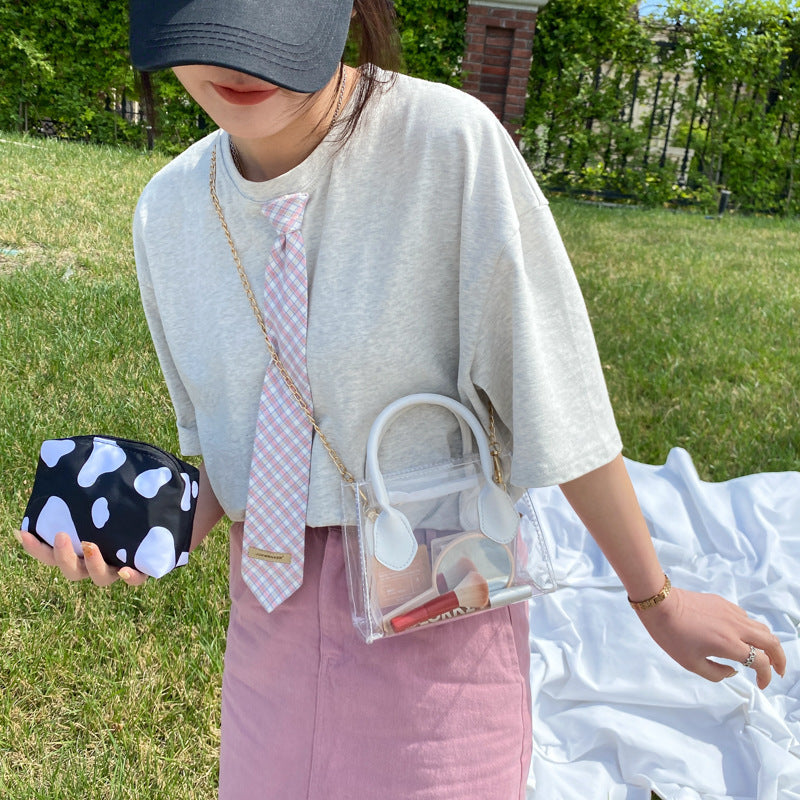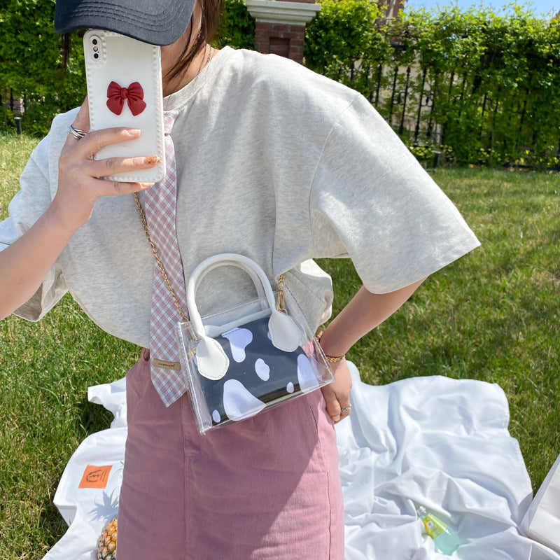 New Fashion Transparent Cow Leopard Printing Women Small Chain Crossbody Handbags Casual PVC Ladies Mini Shoulder Messenger Bags